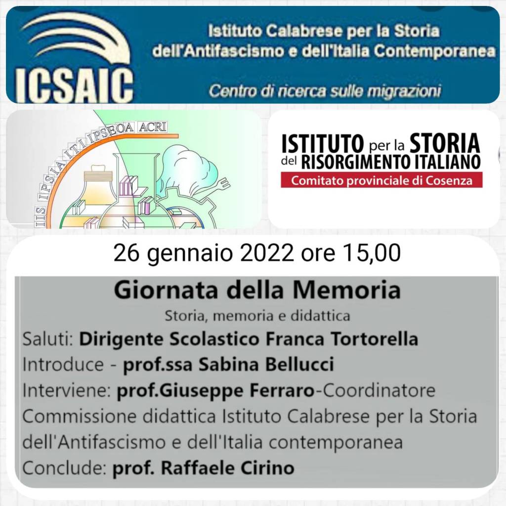 Giorno 26 alle ore 15:00, presso l’IIS IPSIA ITI IPSEOA di Acri, si terrà un incontro in cui si parlerà di razzismo, memoria, Shoah e storia. Tra i vari relatori ci sarà anche il nostro direttore, il prof. Giuseppe Ferraro.