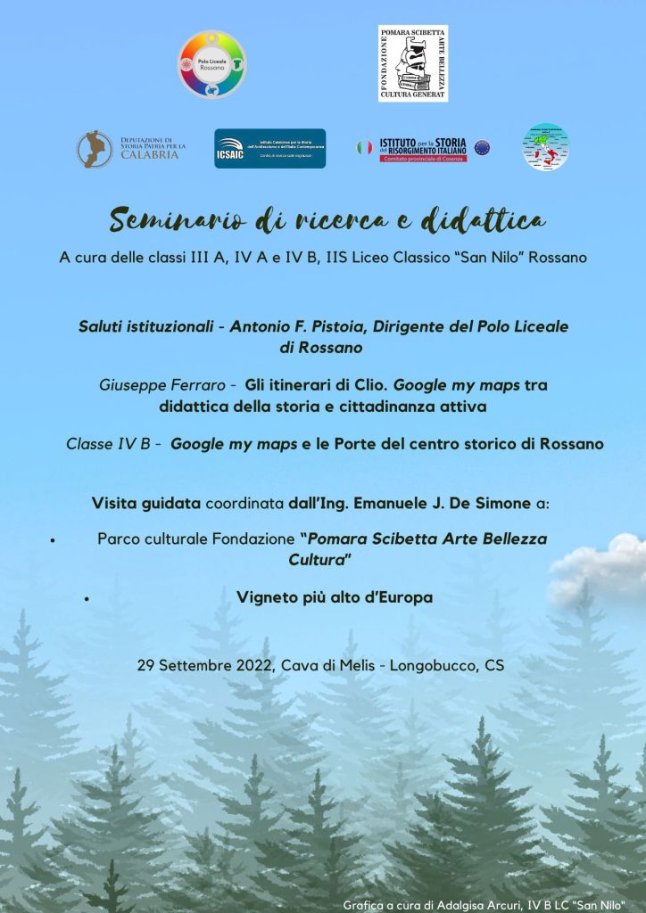 Seminario di ricerca e didattica a cura dell classi III A, IV A e IV B, IIS Liceo Classico “San Nilo” Rossano, coordinate dal prof. Giuseppe Ferraro, a Longobucco – Cava di Melis, giorno 29 settembre.