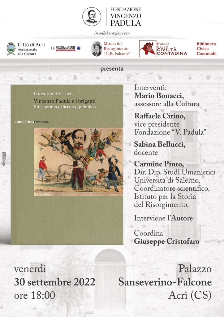 Giorno 30 Settembre ad Acri si terrà la presentazione del nuovo volume del Prof. Giuseppe Ferraro, nostro direttore. Tra i relatori anche Mario Bonacci, Raffaele Cirino, Sabina Bellucci e Carmine Pinto. Coordinerà il tutto Giuseppe Cristofaro. Vi aspettiamo!